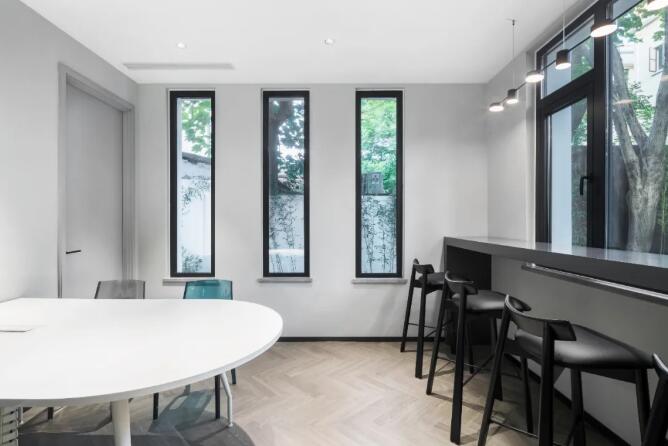 建筑本身原有的采光條件極好,以玻璃隔墻形式,讓整個(gè)空間在動(dòng)線功能分區(qū)上變得更加開放、自由,同時(shí)又相互聯(lián)結(jié),彼此融合。