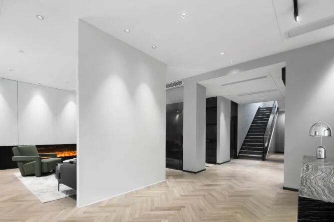 室內(nèi)為符合當(dāng)代辦公需求,定位現(xiàn)代簡(jiǎn)約時(shí)尚的風(fēng)格,白色和黑色的主色調(diào),中間銜接色的灰色調(diào),將一至三樓空間一氣呵成,沒有多余的修飾,打造出一個(gè)宜居、充滿藝術(shù)氣質(zhì)的住宅式辦公環(huán)境。